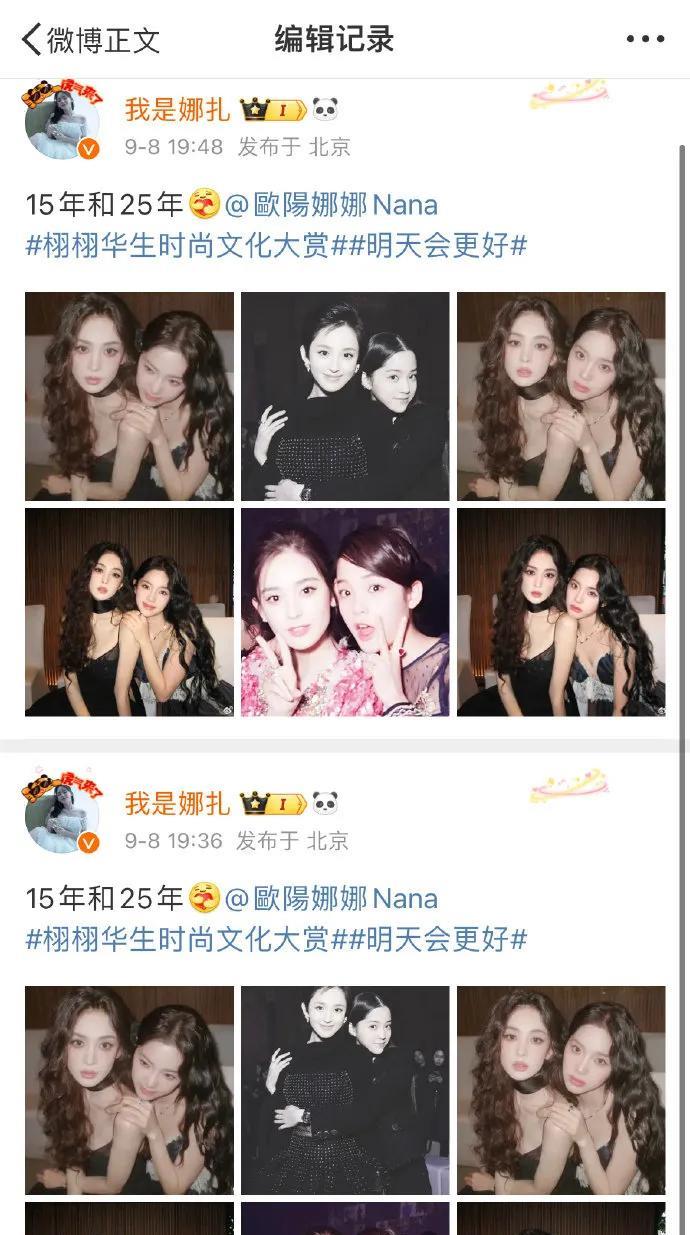 #娜扎晒与欧阳娜娜十年合照旧照现杨幂身影后被编辑#9月8日,娜扎分享与欧阳娜
