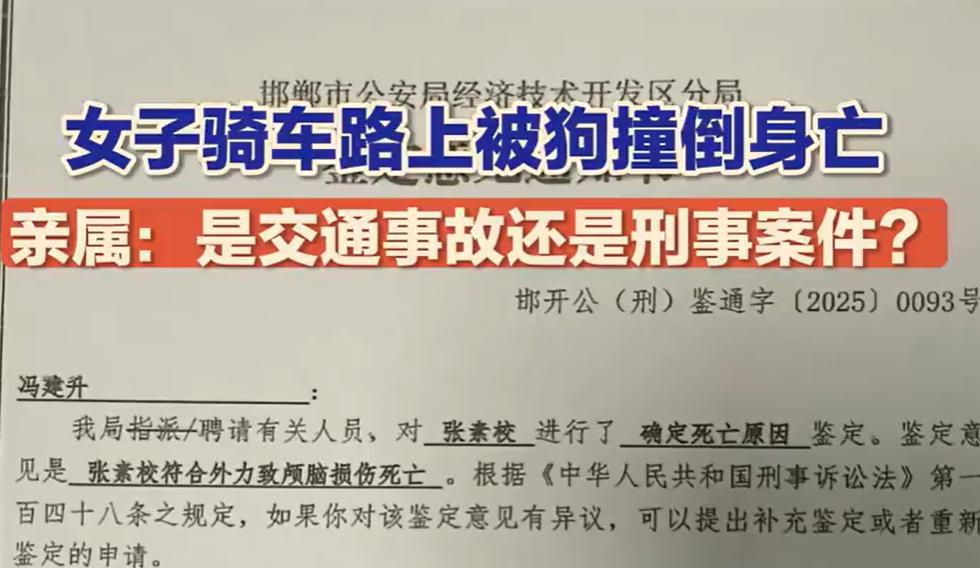 7月20日早晨6点24分,河北省邯郸市的张女士骑电动车去上班,在街道上正常行驶时,一只未拴绳的大型犬(疑似马犬)跟着车跑了起来。狗主人石某看到狗去追张女士,也没制止。 狗在追逐过程中,猛地撞上了电动车前轮,电动车摔在地上,张女士头部着地,当场头破血流昏了过去。有路人看到这一幕后,立即报警,张女士送到医院后,因颅脑重度损伤死亡。 事后,石某将涉事犬只打死,扔到了一口废弃的井里。这一行为,导致立案后,办案人员无法鉴定狗的品种及其健康状态。 张女士因为一只未拴绳的狗失去了生命,简单明了的事故,却引发当地派出所和交通部门扯皮。派出所事故科到现场拍了照片,认为这是路上发生的交通事故,没给立案,建议交给交警处理;交警部门却说非机动车和动物碰撞,不是交通事故,拒绝接收。 狗主人石某承认没拴绳,《中华人民共和国治安管理处罚法》对遛狗不拴绳的顶格罚金就是500元。他认为张女士的家属要的赔偿金太高了,赔不起。当地镇政府也介入协调了,均被石某拒了。 折腾一圈,最后刑警队立案了,刑警队调查结束后,说向法院提起了刑事附带民事诉讼,但是法院又把民事诉讼给退回了。 事情搁置到现在,一直没有结果。狗死了,养狗不拴绳,狗主人应该替狗承担全部法律责任。狗责人付,该判判、该罚罚,还张女士一个公道。