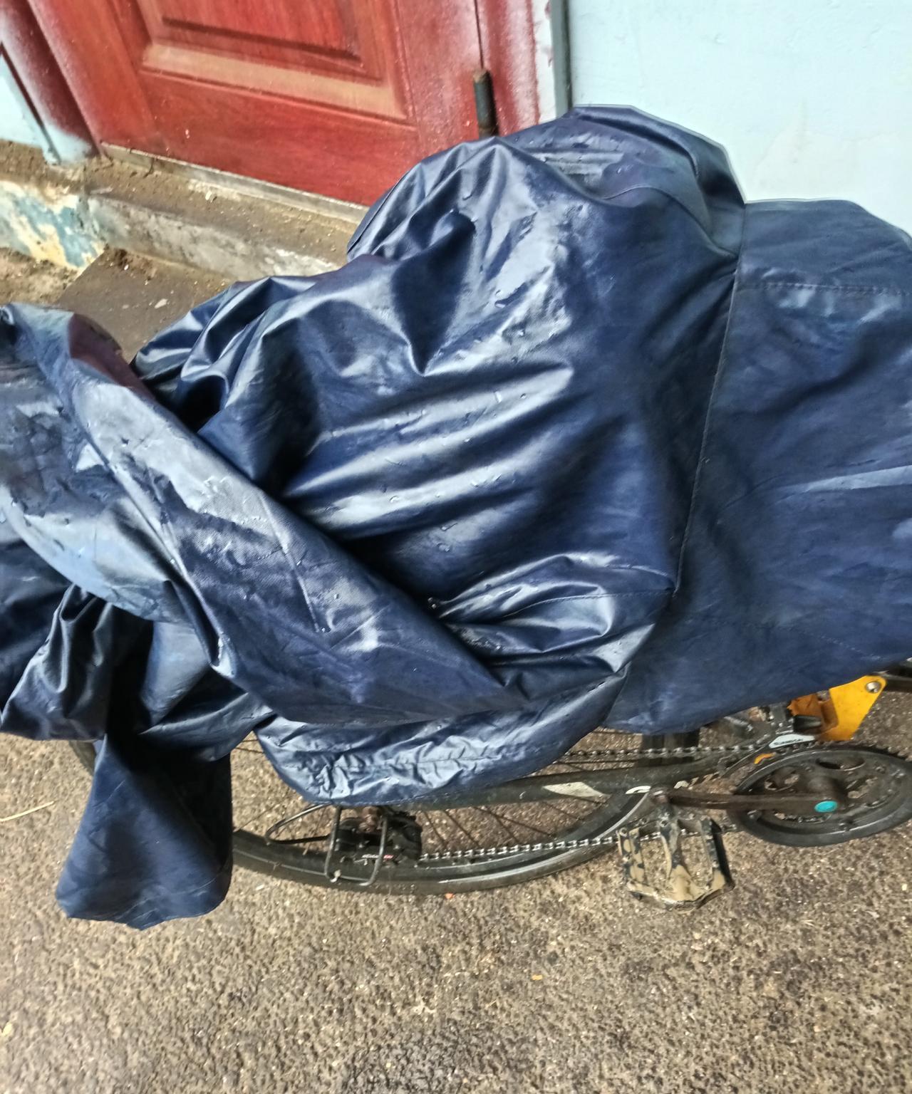 9点之前,湖北省荆州市沙市区都是零星小雨,我没有太在意,依旧是挥竿如故(路亚钓法),尽管没有打到一条鱼,但仍然满怀希望,出竿不止。 大雨说来就来,事先一点预警信号也不给,大点而密集的雨水砸落下来!我的竿也没收,蹬上自行车去找躲雨的地方,只骑了几百米,浑身上下已打湿淋透! 见路的西边有一处平房,急忙快蹬几脚,来到门前,门口屋檐下淋不着雨,正好停车躲雨。 一位满头白发,弓腰驼背的老太太从屋内出来,“在您这里躲躲雨,这雨下的太大了!”。 “没得事没得事,进来坐一下,避避雨!”老太太口齿清楚,中气十足。 “麻烦您了!” “你在这块钓鱼吧!” “是的!钓着钓着就下起了大雨,先躲会雨,浑身都打湿了!” “快把衣服脱了,湿不得的!” 好在我所穿的上衣和下裤都是那种化纤材料的,水一滴完也就干了,脱去上衣,挂在靠背椅上让它滴水。 坐在椅子上与老太太聊了一会天,老太太的外甥开车来看她。 见雨完全没有停歇的意思,再看天气预报,一直到晚上的8点,都有雨,不能再等了,趁雨下小了点,抓紧时间回家。 老太太问我带没带雨衣?我说没有带!她从另外一个房间拿出一件蓝色的半长雨衣递给我,“这雨衣还是好的,挡挡雨可以的!” “我借穿一下,明后天我再来时,跟您带过来!” “你穿吧,不用再带来了,屋里还有!” “我肯定跟您带过来,您方便了我的,我不能这样做人做事!” 聊天中得知,老太太今年80有4了,一个人独自居住在这里,周围没有邻居,她老伴已故去10多年了。她平时种种菜,弄弄菜园子,放点虾笼子。她有三个儿子一个女儿,连重孙子都有几个考上了大学!她说她喜欢这种弄弄菜园子,这里动动,那里磨磨,自由自在的生活。 老太太思路清晰,表达流畅,个头不高,腿脚利索!一看就是那种比较能干吃得苦的农村老人!