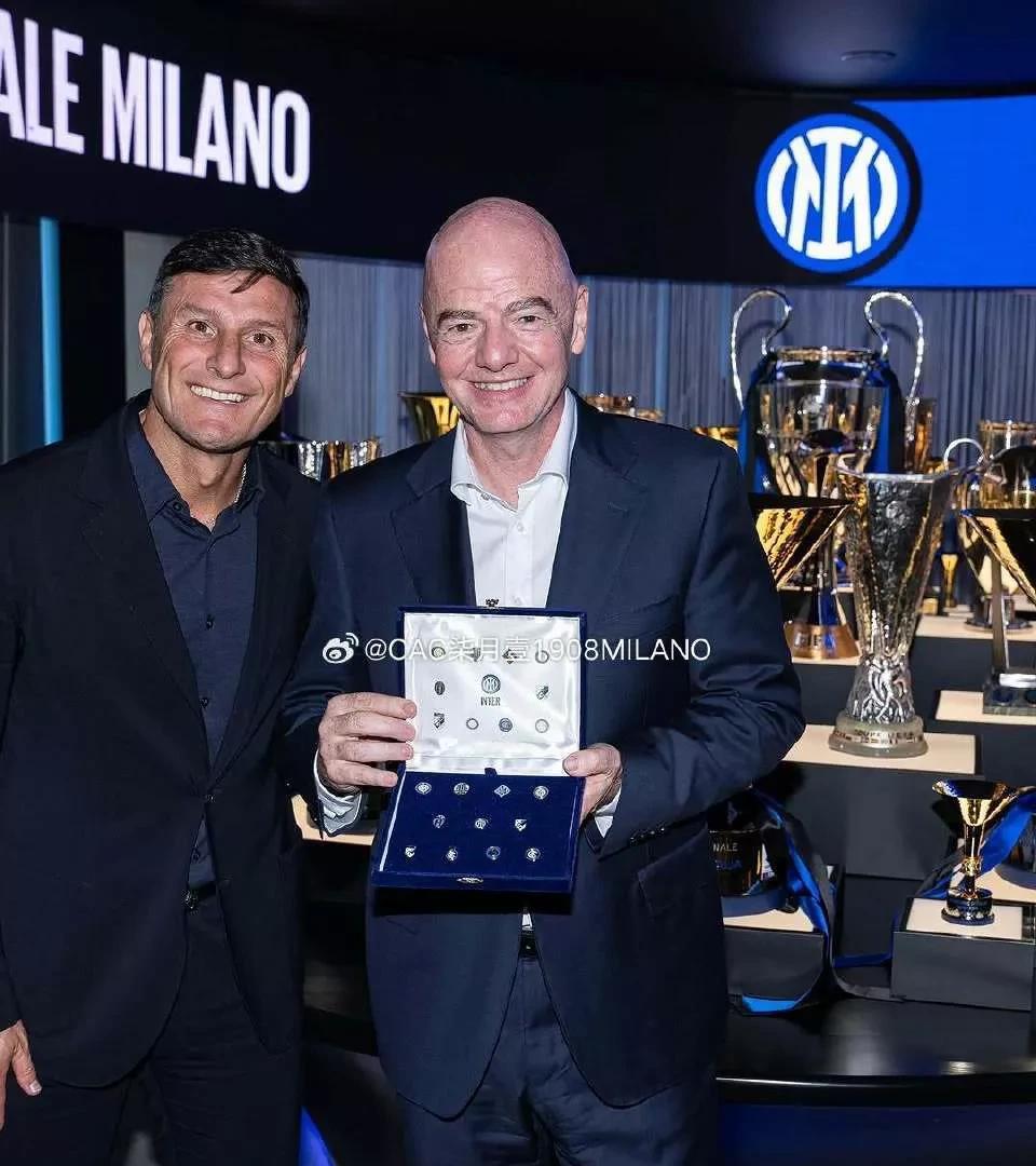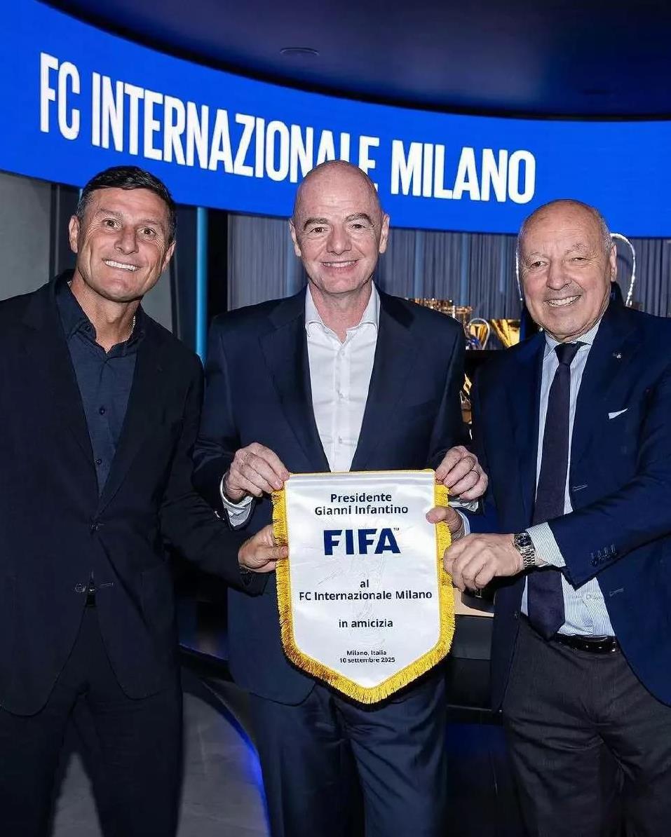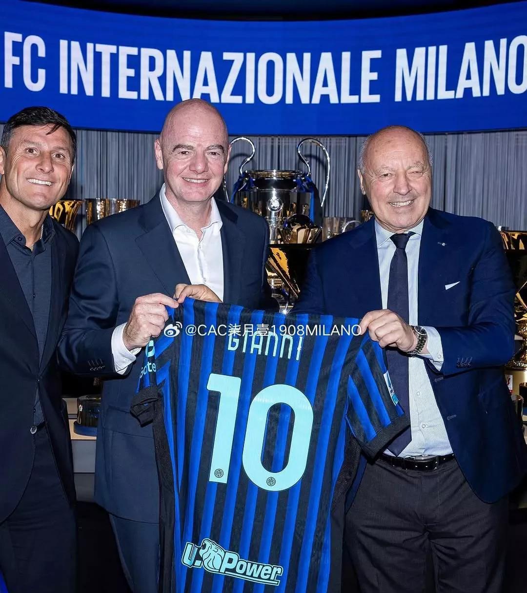 欢迎国际足联主席,内拉祖里因凡蒂诺! “我听到的是这样的话语:‘欢迎回家’,能访问国际米兰总部并与总裁兼首席执行官朱塞佩'马洛塔,副主席国际足联传奇人物哈维尔'萨内蒂,以及首席财务官乔治'里奇和办公室主任马西米利亚诺'卡塔内塞会面,真是令人非常高兴。 我们讨论了许多重要议题, 包括球员福利、运动员健康, 国际比赛日程以及足球的未来, 参观奖杯陈列室是一次非常难忘的经历”。 — —因凡蒂诺