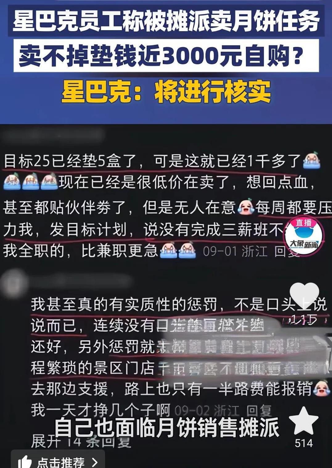 一个卖咖啡的星巴克,开始推销月饼了,而且还是向员工摊派任务,这波操作真让人无语了