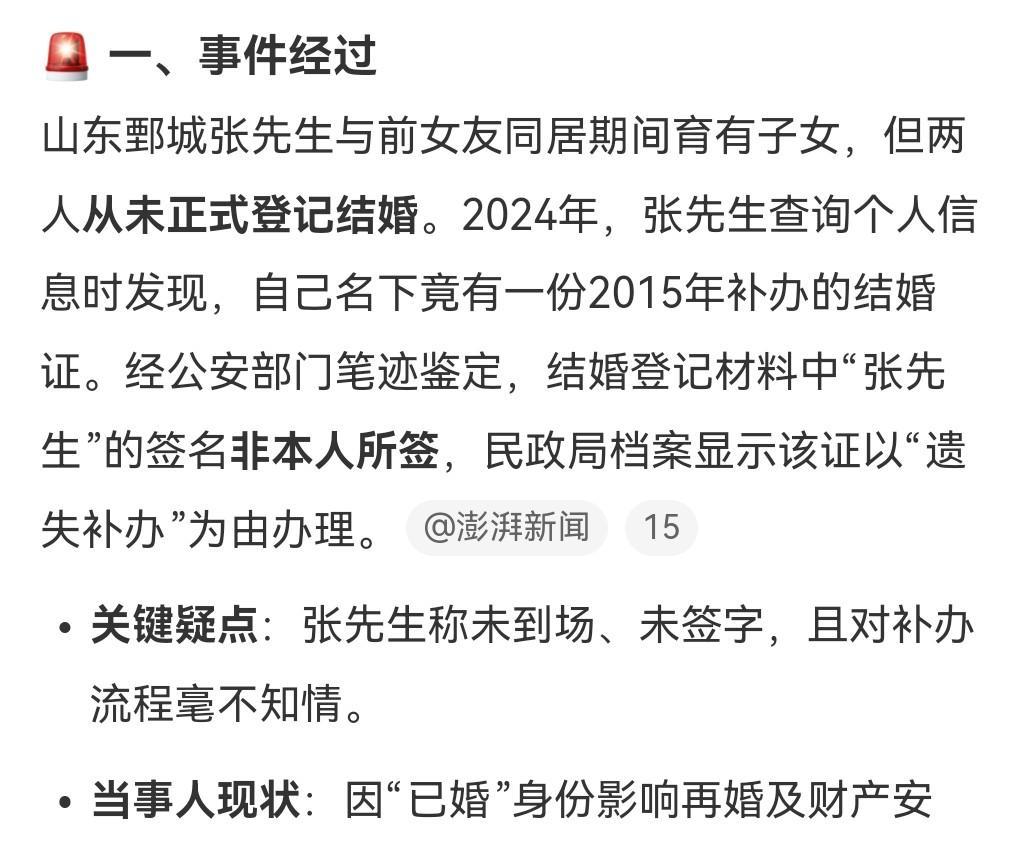 这也太离谱了吧。 这是严重的犯罪行为,必须严惩啊。 9月11日在网上看到这么个离谱的案件。 男子称遭前女友冒领结婚证。 想不到结婚证都能够被冒领,涉事民政局是不是也有点责任? 这男的实在是太惨了,明明没结婚,就被前女友冒领了结婚证,这跟谁说理去啊? 严惩当年办结婚证的人和这个前女友。 当年签字都不是男子签的,竟然能办下来。 真是让人瑟瑟发抖。#男子称遭前女友冒领结婚证#