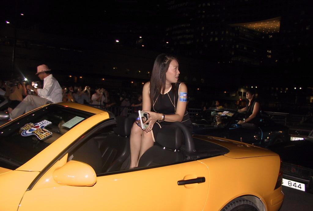 那英年轻时也是性感俏妞,直接穿着短裙坐在跑车的后顶上,大秀好身材啊!胸大腰细大长