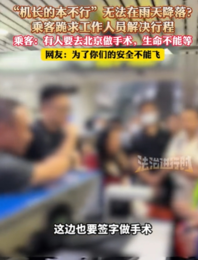 山西太原,男子着急给妻子做手术,他是乘着飞机去的,途中却被告知,目的地下雨,机长的本不能在下雨的地方降落,导致航班延误,男子想到妻子不能等了,着急得扑通一下跪下去,让工作人员帮忙解决行程问题,而大家听了工作人员的话,现场的乘客都大怒了。 据法治进行时,9月11日报道,男子在家的时候,看着妻子的病情越来越严重了,有人跟他说,他妻子的病需要到北京做手术才能康复。 着急的他,马上安排了行程,他的妻子的病等不了了,他要赶紧带着妻子到北京。 他们是乘飞机过去的,在飞机上,他看着痛苦的妻子,他只期待飞机能够快一点到达北京。 然而接近到太原,乘务员却告诉乘客们,说北京下雨天,要到太原转乘另一个飞机。 乘客们也不知道怎么回事,一切只能听从安排,结果到了太原,工作人员告诉乘客们,由于北京那边下雨,机长的本不能在下雨的地方降落,所以航班要延迟。 听了这句话,男子瞬间着急了,如果他只是出行游玩,如果他只是一个人,他可以等一等,但他妻子的生命不能等啊! 他着急地跑了出来,恳求工作人员,马上解决他所遇到的事情,拼车也可以,他只想赶紧到达目的地。 但工作人员让他等一等,他们继续在解释,但工作人员越解释,乘客们越愤怒。 看着乘客们都愤怒了,男子更是着急了,他直接给工作人员跪下,希望工作人员赶紧解决他的问题,他需要马上到达目的地。 本来如果没有出现什么意外,他们的航班很快就会到达北京,现在却因为机长的本的问题导致航班延误,也导致他妻子不能及时得到治疗。 想到这里,男子一刻也等不住,人群中,乘客们看到这种情况也是纷纷抗议。 其中一位大哥就说了,飞机上的时候,乘务员就跟乘客们说,可能要换一架飞机,结果到了这里,才告诉乘客们飞不了了。 大哥说这涉嫌欺诈,但工作人还是在解释。让大家等一等,机长的本真的不能在下雨的地方降落。 大哥恼怒地吼道:“我们为什么要等,我们能等,生病能不能等!” 男子听到这句话,非常感激大哥为他说话,是啊,妻子的手术还等着他签字呢,他真的一刻也不能等了。 况且大哥还在质疑,既然机长的本不能在下雨的地方降落,那为什么在起飞前两天没有去查天气预报,机长就算开着这么大一架飞机,拿这么多人的生命当测试,大哥越说越愤怒。 大哥的愤怒之言,引起了大家的共鸣,乘客们也在纷纷表达内心的愤怒。 有的乘客跟大哥一样,他们觉得既然机长的本不行,那么就应该派一个合格的机长,来驾驶飞机,安全的把乘客们送到目的地,而不是拿这么多人的生命,锻炼这位机长。 有的乘客和男子一样着急,都有急事要到达目的地,一分钟都等不了,他们也希望工作人员能够马上解决这个问题。 还有的乘客,心里都有阴影了,这个机长,明明本不行,还敢开这么大的飞机,他们真的不敢再坐这个机长开的飞机了。 那么遇到这种事情该怎么办呢? 1、乘客们坐飞机已经和航空公司构成合同关系,航空公司应当履行自己的义务。 《民法典》第509条规定:当事人应当按照约定全面履行自己的义务;当事人应当遵循诚信原则,根据合同的性质、目的和交易习惯履行通知、协助、保密等义务。 乘客们已经支付了费用,那么航空公司就应该安全地将乘客们送到目的地,他们就应当派合格的机长,驾驶飞机,按照约定,到达目的地。 2、由于航空公司派的机长不能在下雨的地方降落,导致乘客们不能按照预定的时间到达目的地,航空公司是有过错的。 《民法典》第1165条规定:行为人因过错侵害他人民事权益造成损害的,应当承担侵权责任。 发生了这样的事情,男子和有些乘客都比较着急,工作人员就应当马上安排将他们送到目的地。 3、在这一趟旅行中,如果有乘客因为机长不能在下雨的地方降落,导致他们有所损失,乘客们是可以要求航空公司赔偿的。 那么对这样的事情,你有何看法呢?素材来自法治进行时