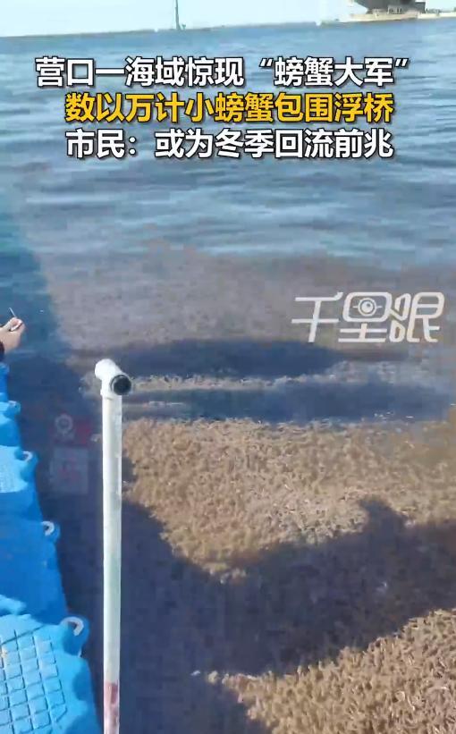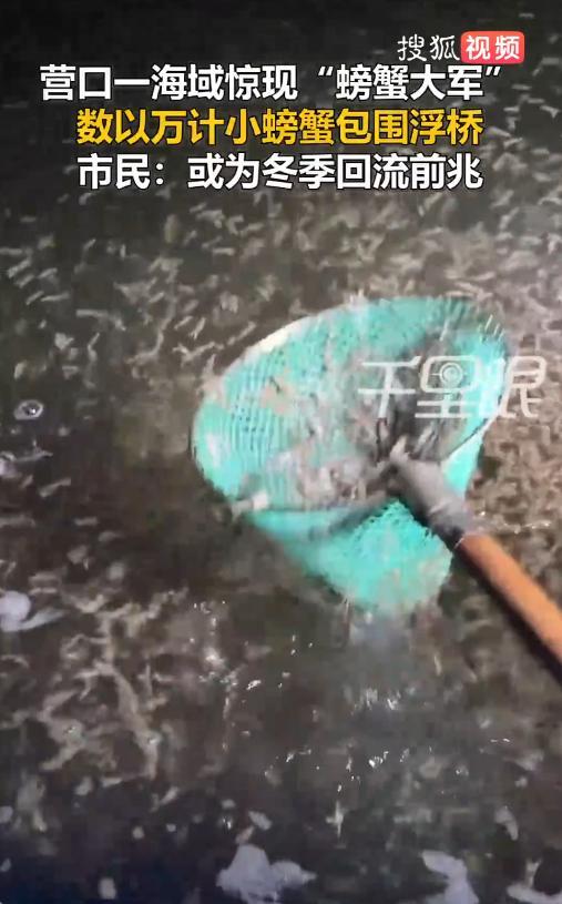 解释不清了!9月8日,辽宁营口,一男子在海边散步时,突然看到海中有小螃蟹在泳动,他本以为只有一点点,结果仔细一看,密密麻麻的全都是,大约有上万只!而且只出现在浮桥边,随便用抄网一捞就是好几斤。网友:建议放生! 最近这几天,北方的气温明显下降了很多,晚上睡觉都不用开空调了,早上出门还要穿件外套。不仅是人,动物在感受到气温变化后,行为也会做出一定的调整。 这天,王先生在山海广场散步,他无意中瞅见海水中有几只小螃蟹在泳动,起初他并没有在意,结果又往前走了两步,发现并不是只有那么一点螃蟹,浮桥边上聚集成了密密麻麻的“螃蟹海”,放眼望去,全都是小螃蟹! 王先生非常好奇,因为小螃蟹只出现在浮桥边上,其他的位置看不到任何一只,于是就拍下了视频发到网上去。 网友们看后也是提出了猜测,有人觉得螃蟹是在浮桥边捕食,有人觉得浮桥边出现了旋涡,把螃蟹们卷了过来,还有人认为是天冷了,螃蟹要回流,往深海里面去了。 大家议论纷纷,但谁也说服不了谁,不过很多海洋动物都有回流的习惯,天一冷,它们就会游到暖和的水域生存。 大家对于这件事是怎么看?