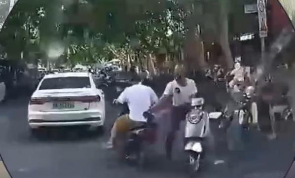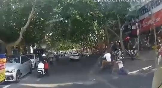 在一个路口,一位大爷骑着电动车逆行,一路行驶、一路寻找“猎物”。一位小伙子骑电动