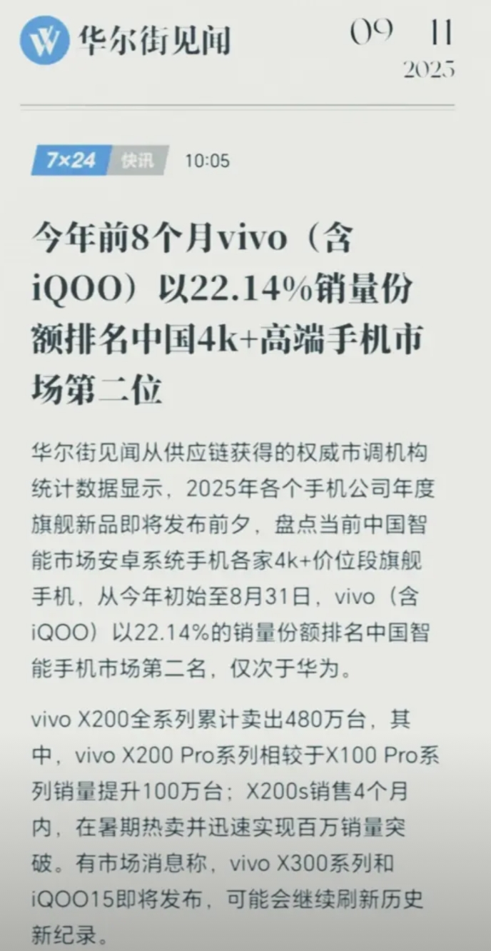 大事不妙!原来去年的唯唯诺诺是为了今天的一鸣惊人。本以为去年的X200系列是vivo在高端市场打下的一段地基,但是看到X300系列才知道,这都已经要封顶了,这手机要是一发布,就是它要彻底坐稳头部的意思。 先说外观,手机影像卷到今天,镜头模组大得像小太阳一样,凸起厚得能当手机支架,揣在口袋都难受,行业大家都有的通病。vivo这次偏偏用一体式冷雕技术,把 2 亿像素的模组硬生生压到只有 1.28mm 的凸起,机身厚度控制在 7mm 级。要知道,十年前的旗舰机差不多也就这个水准。影像堆料 + 轻薄手感,终于不再是鱼与熊掌的选择题,而是真正被 vivo 同时拿下,粉丝们这里还别急着笑。 还有性能上X300 不是简单的首发,据了解vivo与 Arm、联发科长期共研的成果。蓝晶芯片技术栈 + SME2 特性,让端侧 AI 效率提升 20%;天玑调校看蓝厂这句话真不是吹捧。跑分更是直接突破 400 万,成为首个站上这个台阶的机型。换句话说,性能玩家不用再犹豫,X300 已经把参数表给写满了。 而且参数并不是唯一卖点。销量与用户画像说明问题:X200 Pro 系列破200万台,30岁以下年轻用户接近一半,苹果换机用户超过 20%。X 系列在年轻化和苹替人群里的势能,已经相当可观。X300 标准版更是对标苹果 Pro 的小屏旗舰,6.31 英寸 + Pro 级配置,简直就是最强小屏新选择。而 Pro 版则剑指超大杯,蔡司双两亿直接把影像牌打满。 我个人对此的判断是,X300 系列可能会成为 vivo 的分水岭。它不像以前只是让人感觉有点特别的国产高端,而是要真正塑造起自己的铁杆用户群,甚至改变小屏旗舰市场的格局。毕竟,能把影像旗舰做薄的,不只是工艺突破,更是对消费者们需求的理解,你们对此怎么看?