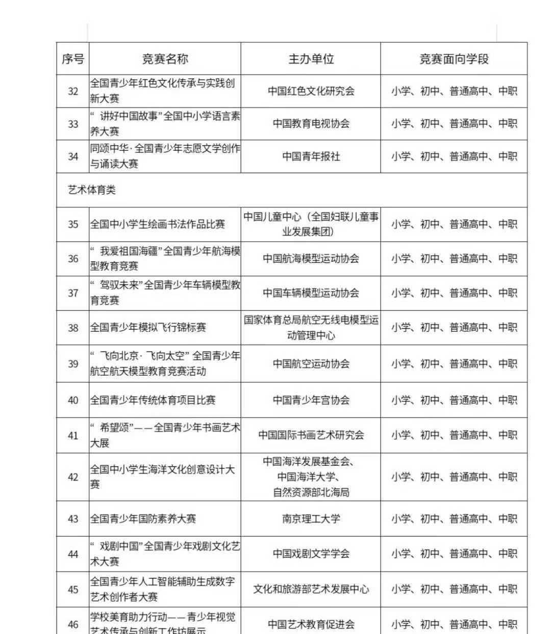 2025-2028中小学竞赛白名单发生巨变 中小学竞赛白名单最新的3年