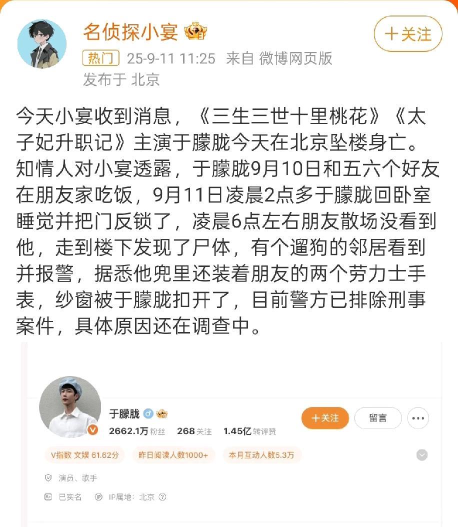 今天的娱乐圈真的太“炸裂”了! 第一个炸裂的消息是,37岁的于朦胧凌晨在朋友家中