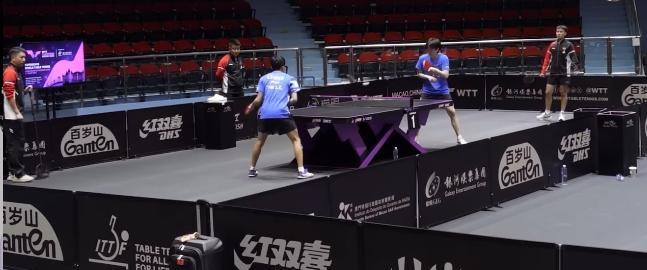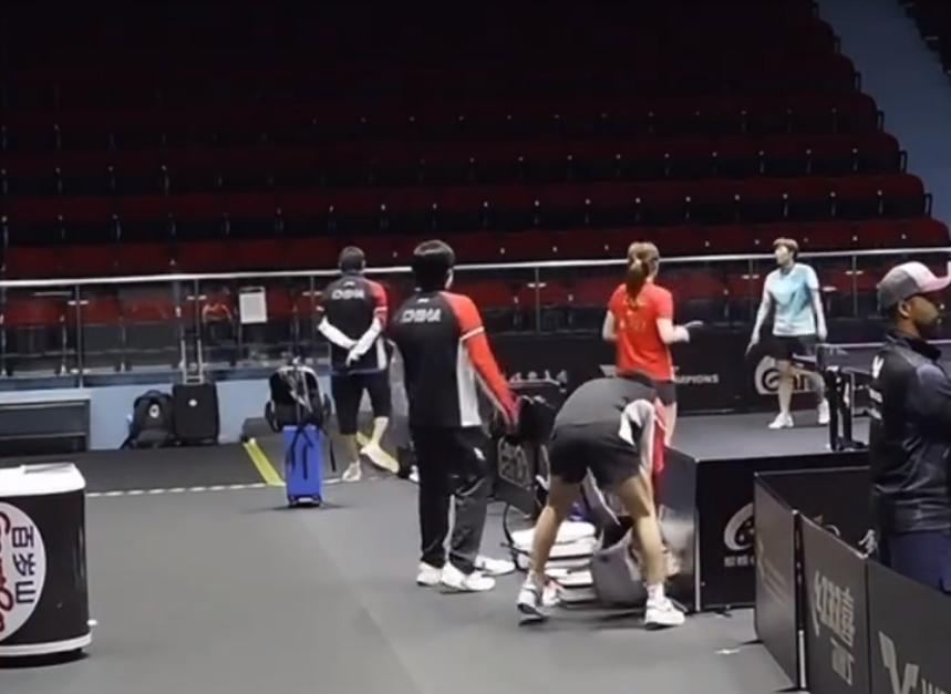 王楚钦贴了肌贴开始训练了。 澳门冠军赛男单1/8决赛,王楚钦将对阵丹麦选手格罗特
