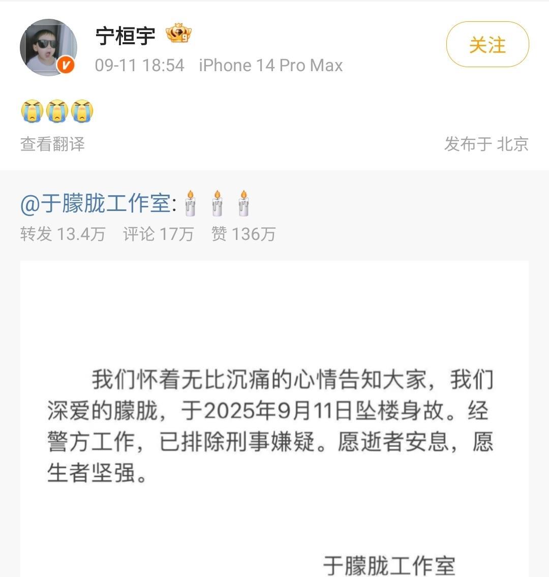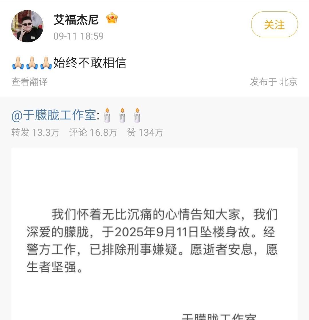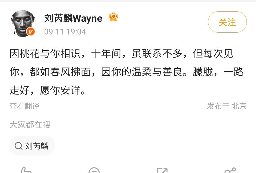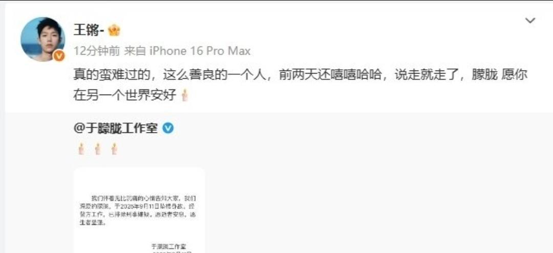 于朦胧去世,娱乐圈众明星集体发文悼念。 看得出,于朦胧在圈里的人缘是真的好,大家