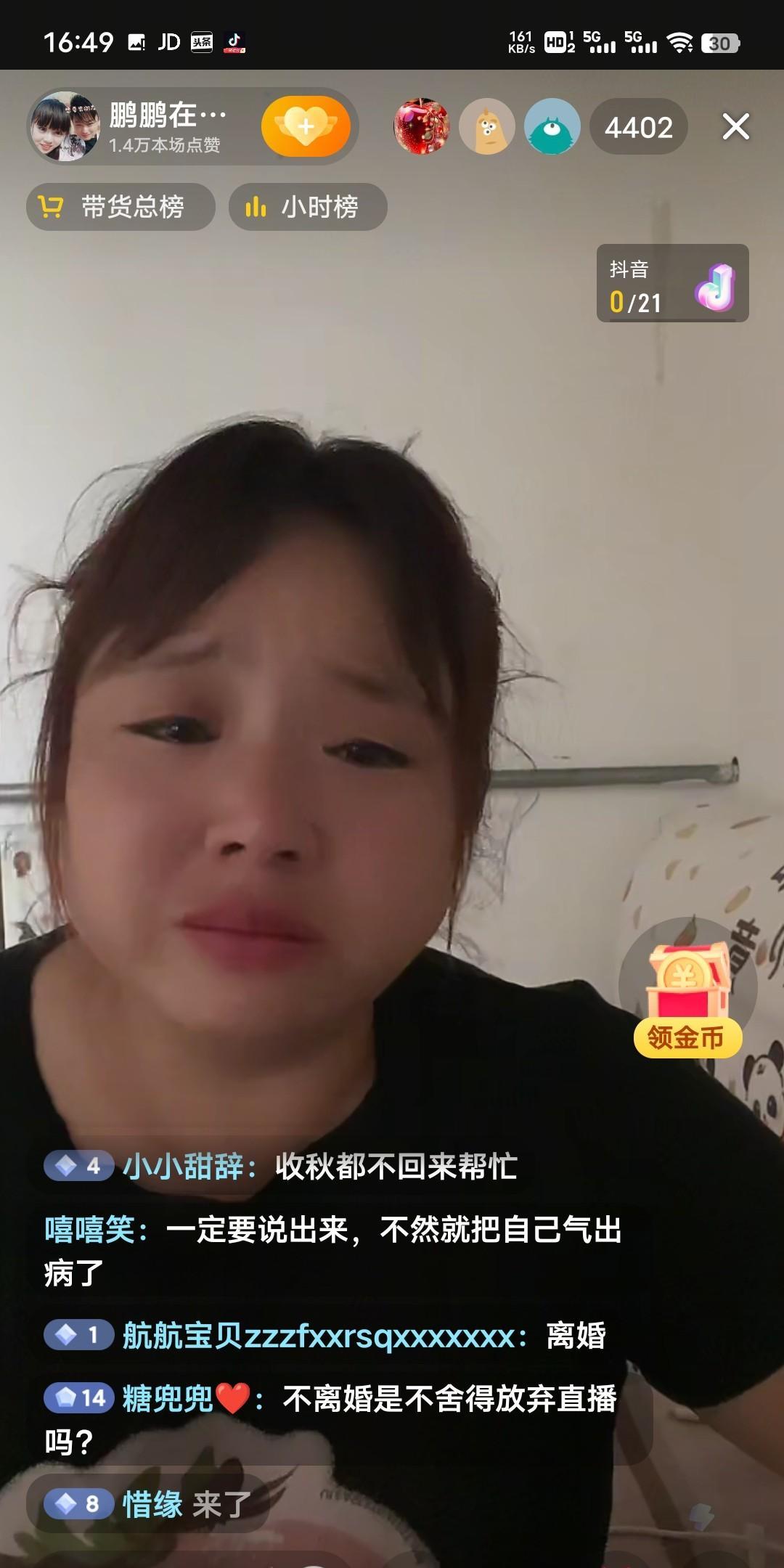 丹丹正在直播,鹏鹏突然打来电话,眨眼间,小两口就争吵起来。 鹏鹏埋怨丹丹在直播间说了他小姨和他姥姥闹矛盾的事,还要求丹丹马上停播,不许她再用自己的账号直播。 当着众多网友的面,丹丹情绪崩溃,对着镜头伤心落泪。 不少网友刷屏,劝丹丹赶紧和鹏鹏离婚,离开这个破败的家庭,带着孩子独自生活。 曾经恩爱甜蜜的小两口,如今被生活琐事搅得一团糟,矛盾日益增多。 真是贫贱夫妻百事哀!