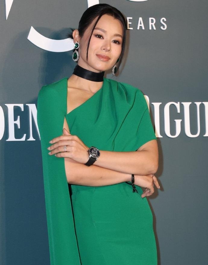 最近胡杏儿在出席时尚活动的时候穿了一件绿色的裙子,看起来靓丽又年轻。 她脚踩黑色厚底高跟鞋,看上去像个靓丽的超模。 胡杏儿搭配的这件裙子很修身,能够让她秀出完美的身穿曲线,尽显高贵之美。 她搭配的这件裙子上有很美的披风,能够让她展现出潇洒时尚的魅力。 胡杏儿挽着超美的秀发,还戴着奢华的耳坠,确实是太漂亮了。 她腿上还穿着丝袜,由于穿的是开叉裙,所以秀出了漂亮的大长腿。