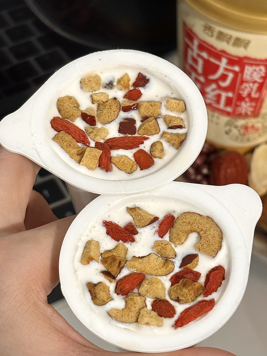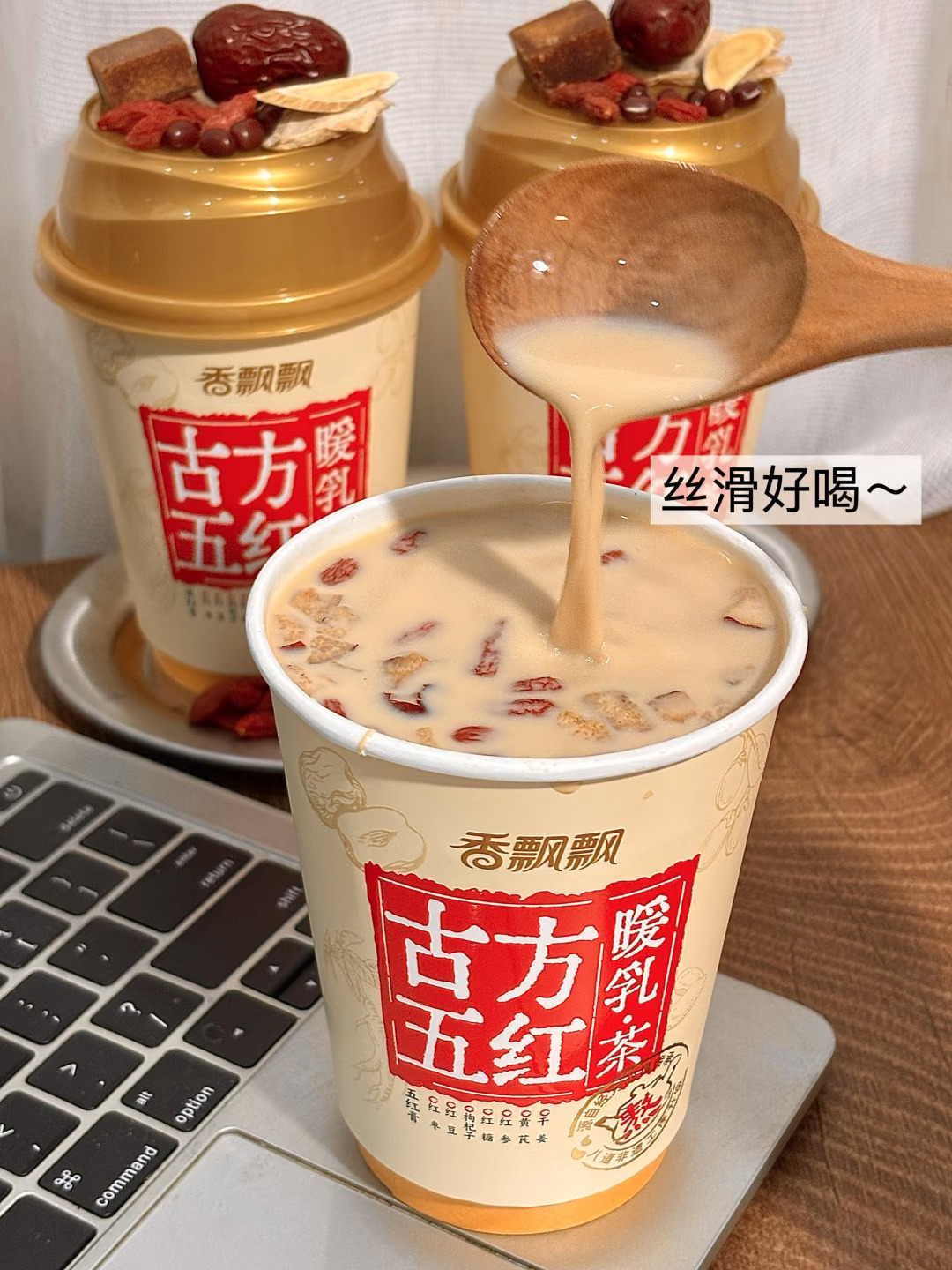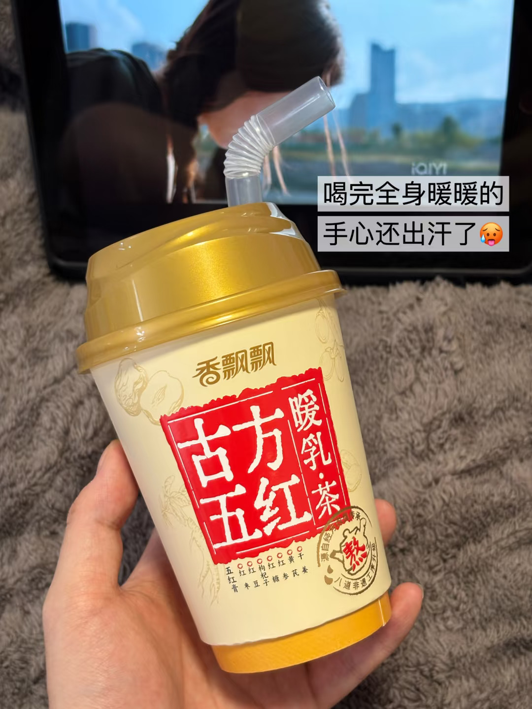 谁懂!对象夏天爱吹空调又遇上生理期 一整个痛上加痛😖 每次点个奶茶都要等好久 到手还变的温凉温凉 还好家里囤了在网上种草的👉🏻古方五红暖乳茶👈🏻 简直就是生理期的及时雨🥺 配料一看就安心: 红枣、红豆、枸杞、红糖、红参、黄芪、干姜… 8种好东西!药食同源~实实在在看得到! 古方五红汤➕黄芪bu🩸汤! 喝起来有股药食特殊的香气 丝滑香醇! 喝完胃里暖暖的 对象舒服好多了☺️ 女孩子真滴需要姨妈奶茶好好温养~