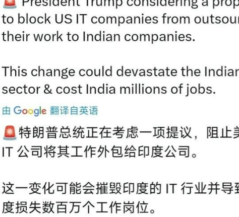 特朗普终于找到美国近些年来衰弱的原因了,那就是国内大部分企业都外包给印度了。