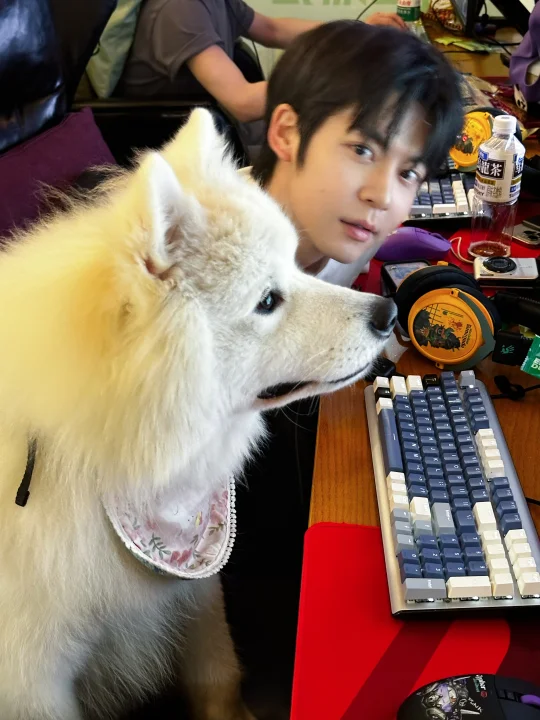 谁懂!网咖里居然有这么可爱的萨摩耶![皱眉R] 打游戏都变得治愈❤️🩹 输了还可以ruarua狗头