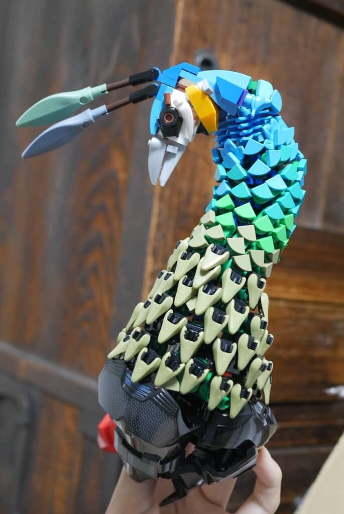 风靡全球的LEGO乐高至今还是大小朋友的一种“游戏”,有不少民间高手就用乐高打造出让人瞠目结舌的创作! 今天博士要来介绍一位高手,来自日本的DeRa,他最近乐高积木重现了名画《牡丹孔雀图》,强大的拼装技巧展现了美妙的姿态,获得大家的赞赏! 本次创作的最关键之处应该是如何用乐高再现日本画中的技巧 “里彩色”(一种表现透明感与层次的绘画方法),DeRa选用了“Satin Trans-Brown”与“Satin Trans-Bright Green”两种透明色零件来拼出孔雀尾羽的光泽感。 用乐高打造“墨”的质感,你从来没有想过吧?