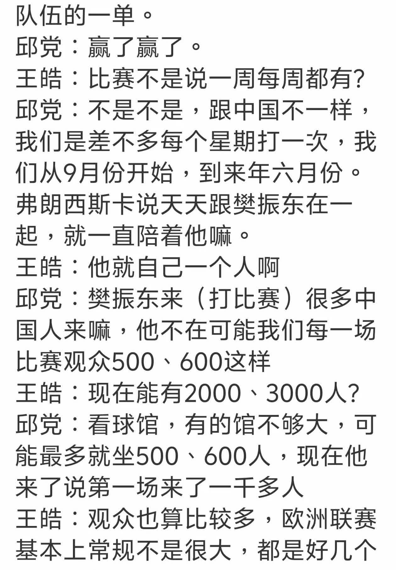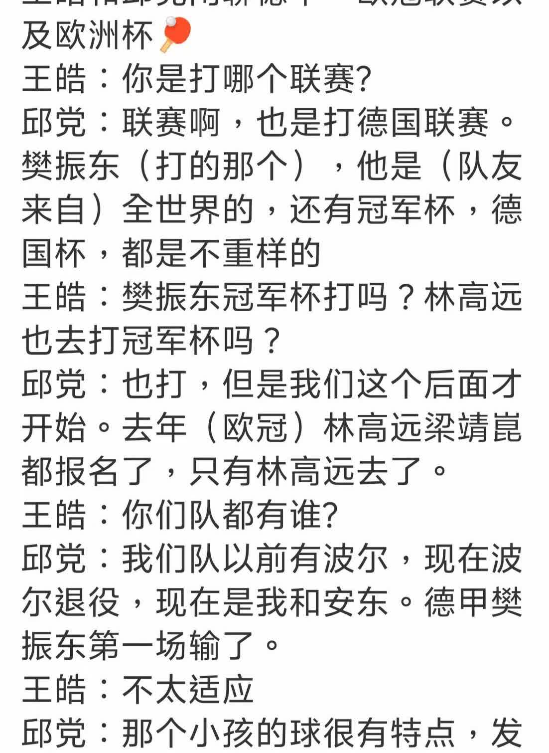 王皓,对弗朗西斯卡、邱党的态度,因樊振东有了变化,那是他的白月光、让他成为奥军冠军教练的人。 “他(樊振东)就自己一个人啊”,王皓这句感慨,也是由衷而发。WTT澳门冠军赛上,王皓抓空和邱党聊天,二人的音频在网上爆传,网友却被这句话戳到了,曾经两人并肩作战,如今都不知道消息了。王皓,要从邱党的口中去旁敲侧击的追问樊振东的消息,很讽刺。弗朗西斯卡战胜向鹏,去和王皓我手时,王皓的态度超乎想象的热情,樊振东的德甲队长,小弗这个称呼真的在闪光。