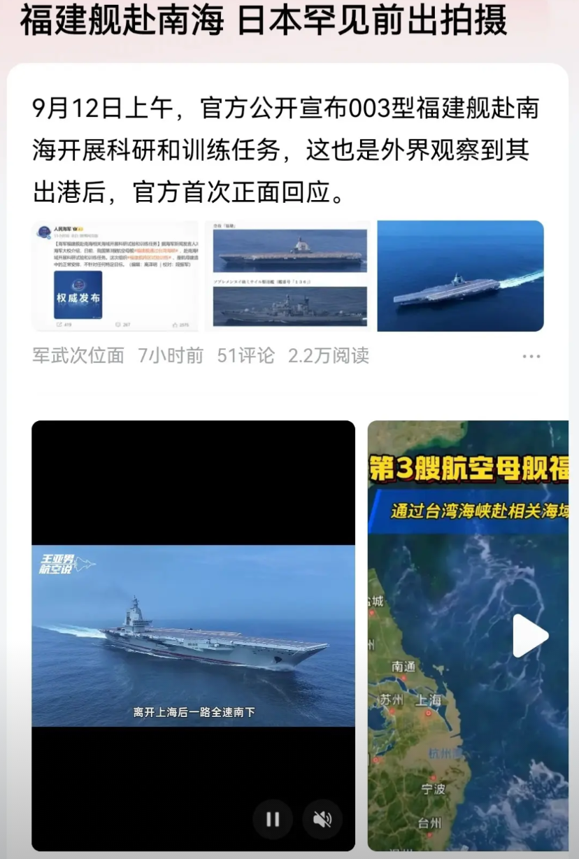 中国海军已经官宣了,福建舰直接南下!这就没有任何的悬念了,后面要看两个日子,一个