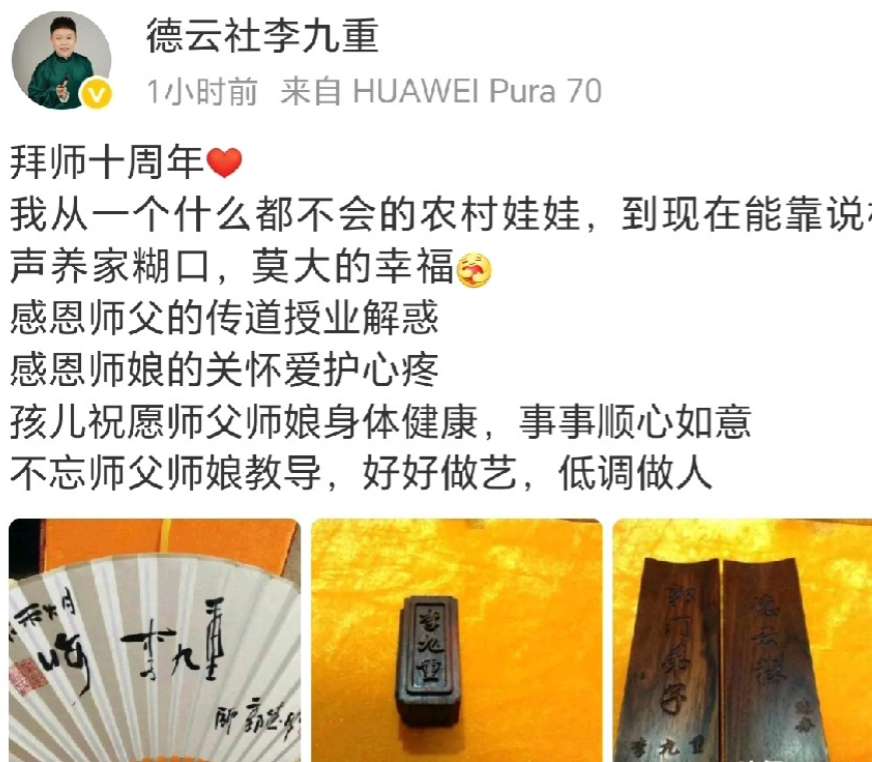 9月13号是德云社九字科二九学员拜师十周年纪念日,二九的演员纷纷发微博,感恩感谢师父师娘的教诲和栽培。