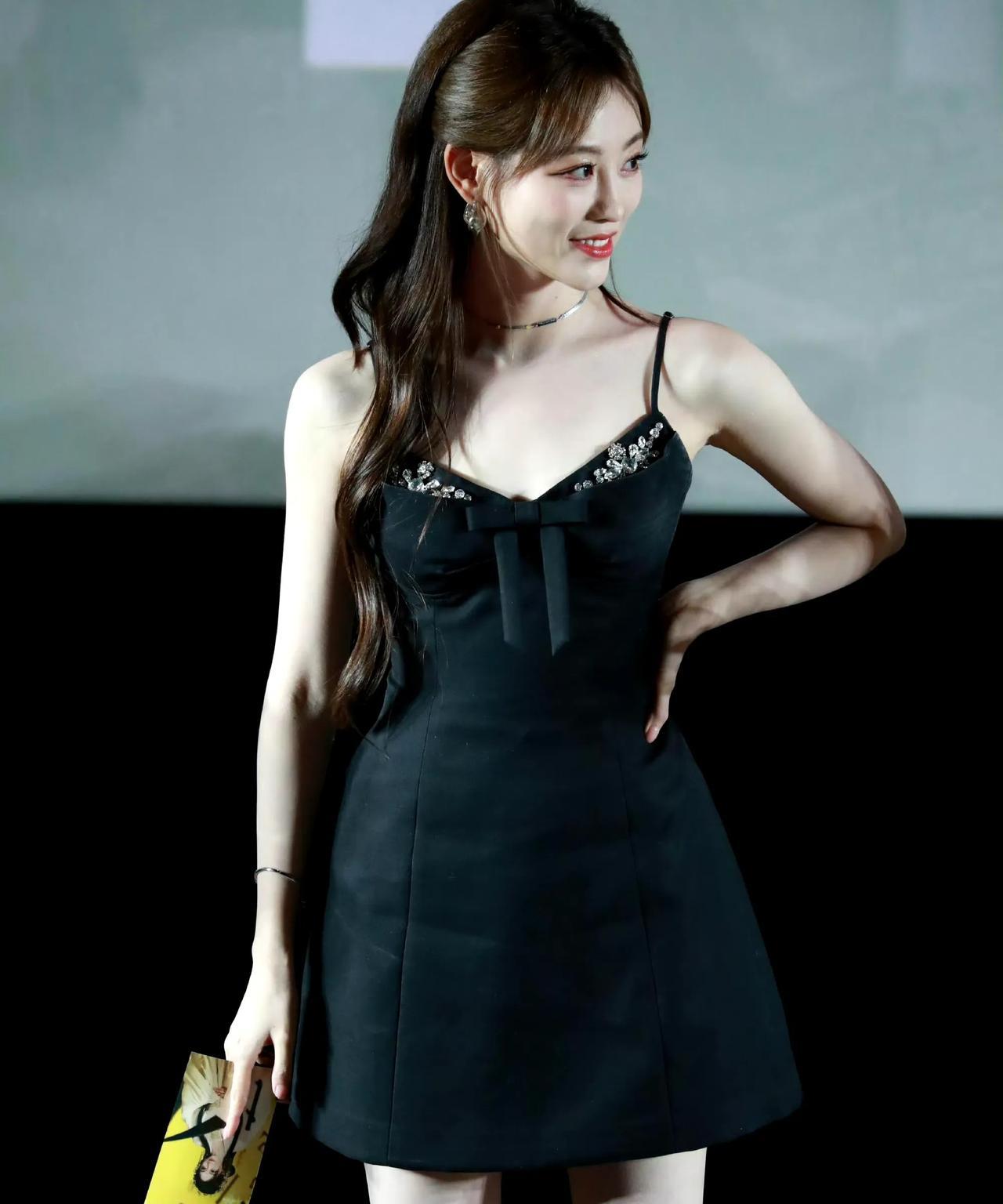 祝绪丹吊带小黑裙真千金公主,白到发光!