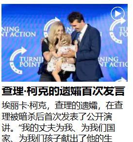 “我的丈夫为我、为我们国家、为我们孩子献出了他的生命。”查理·柯克的遗孀首次发言