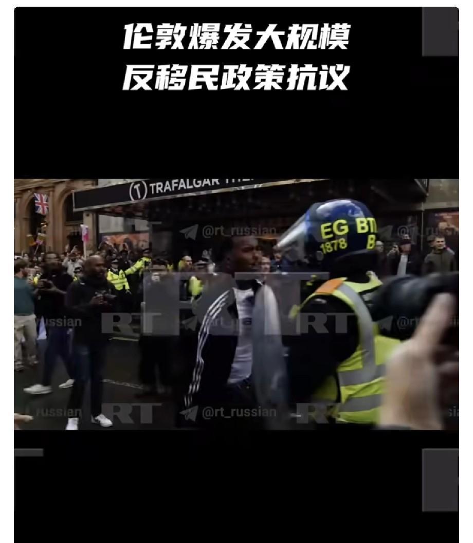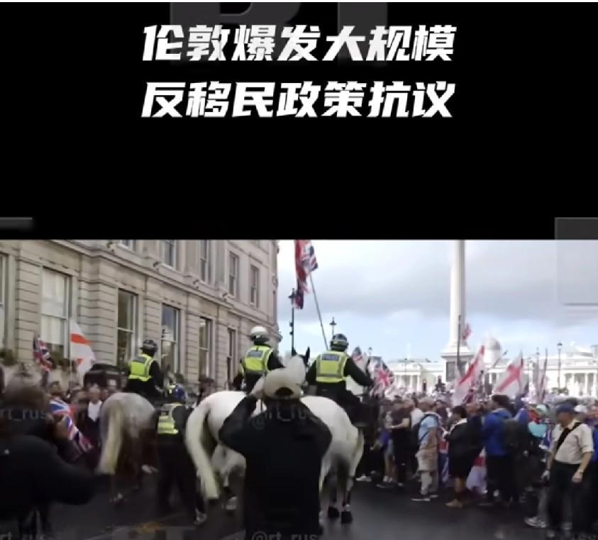 当地时间9月13日,伦敦爆发大规模反移民政策抗议,现场画面显示,抗议人群与警察发