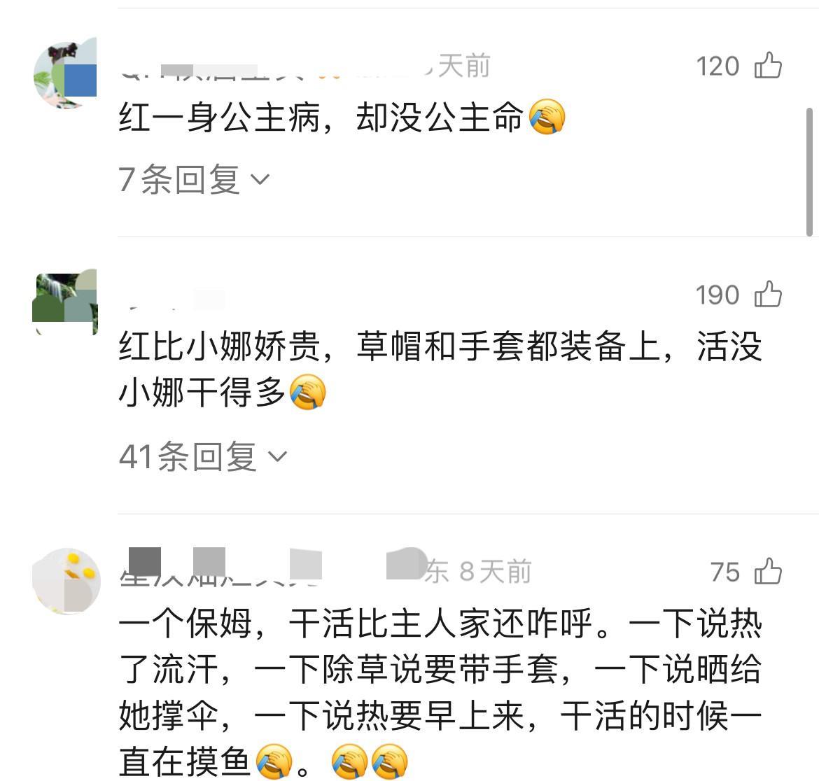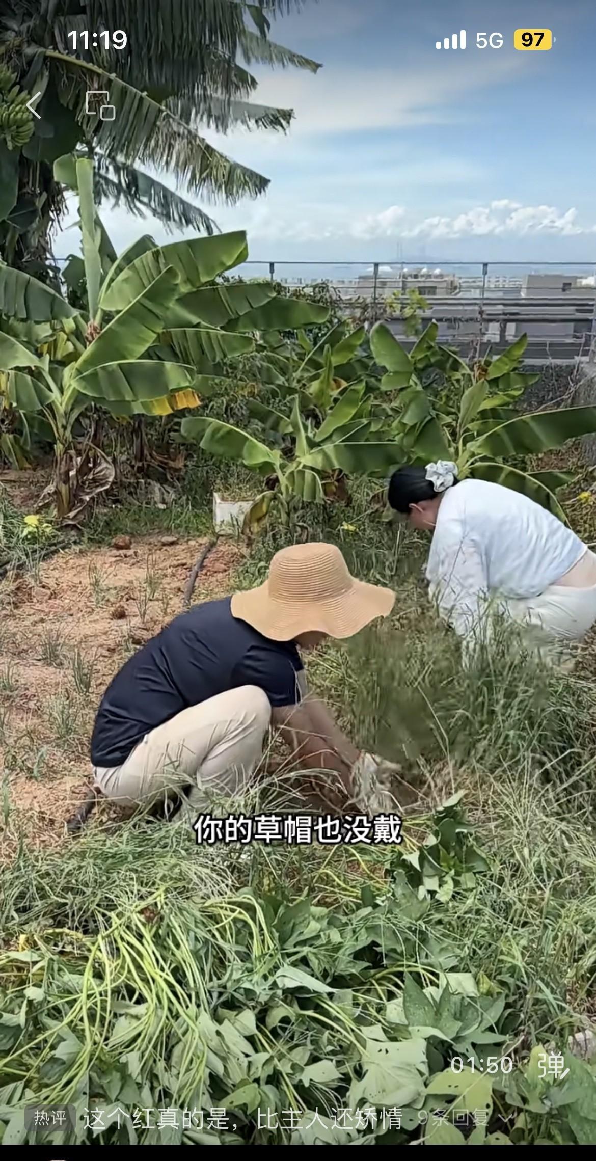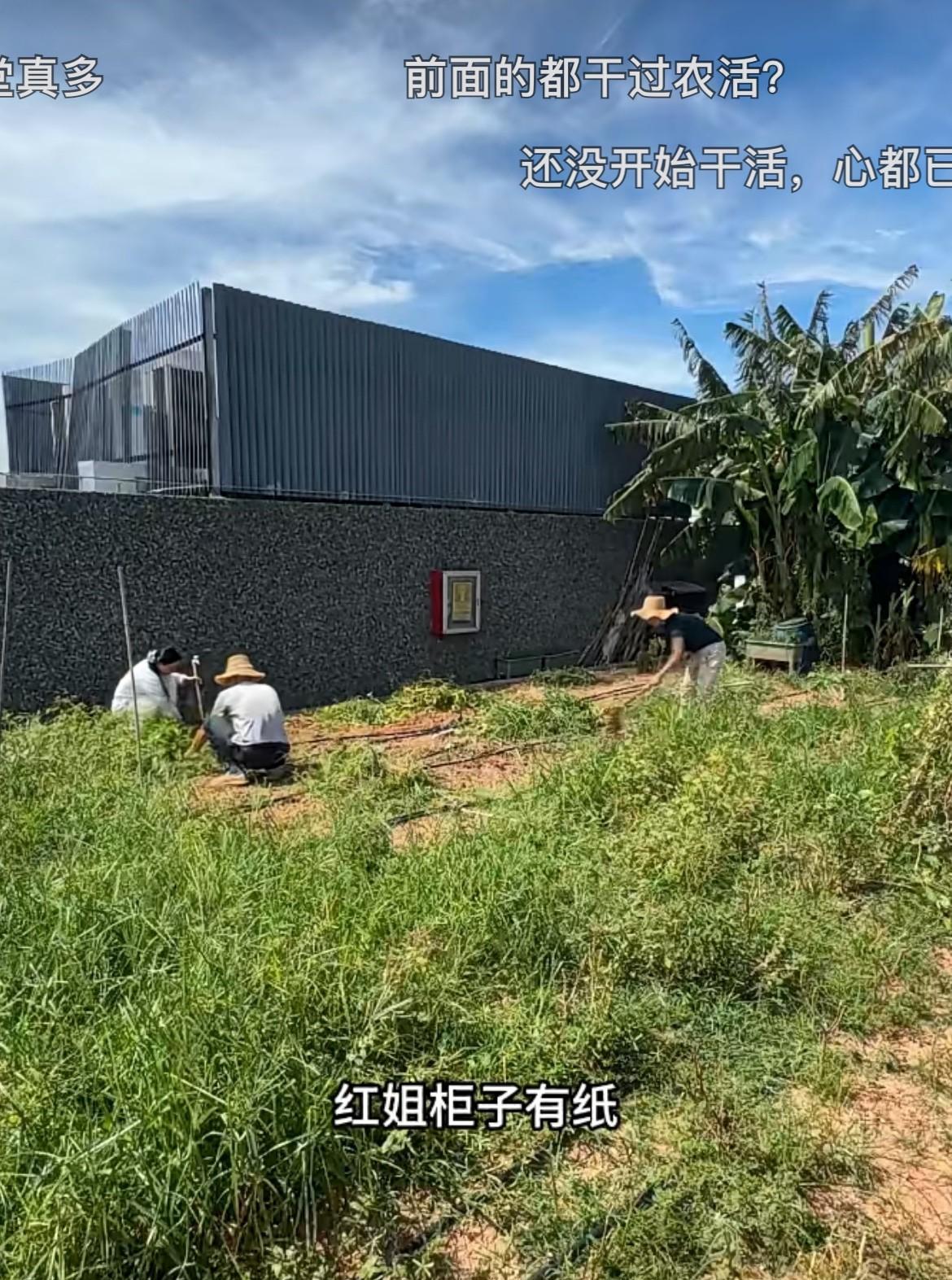 小凤老爹、小娜和红姐一同到天台菜园干活,因为一个月没打理,园里杂草早已疯长。刚开工,红姐的状况就接连不断:先是拿起农具摆弄半天,说工具用不了;没拔几根草,又揉着掌心喊疼,催着要戴手套;没一会儿额头沁了汗,又念叨着需要纸巾擦汗;抬头看看太阳,还抱怨天气太晒,站在阴凉处迟迟不肯动。 反观小凤老爹和小娜,自始至终没一句抱怨,埋头弯腰专注除草,动作麻利又踏实。两人一边忙活,还得时时顾着红姐——帮她找合用的工具、递手套和纸巾,生怕她不适应。看着红姐这副模样,明眼人都能看出她从没干过农活,一点累、一点苦都吃不了,倒是小凤老爹和小娜特别实在,全程没抱怨,麻利干活的同时还得顾着红姐,真是挺体谅红姐的。#红姐小凤# #红姐小娜#