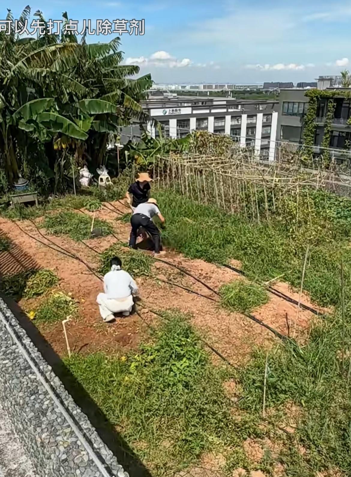 小凤老爹、小娜和红姐一同到天台菜园干活,因为一个月没打理,园里杂草早已疯长。刚开