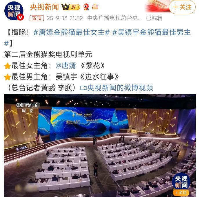 央视置顶+白玉兰同级官方奖!仅办两届却分量十足,唐嫣汪明珠金熊猫14项提名,这份认可太值了!