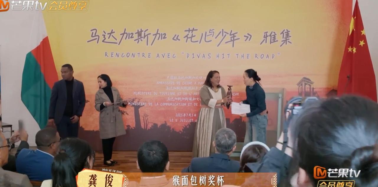 那英拿着奖杯向龚俊他们炫耀, 好不嘚瑟, 下一秒,陈数 也拿着同样的奖杯。 那英