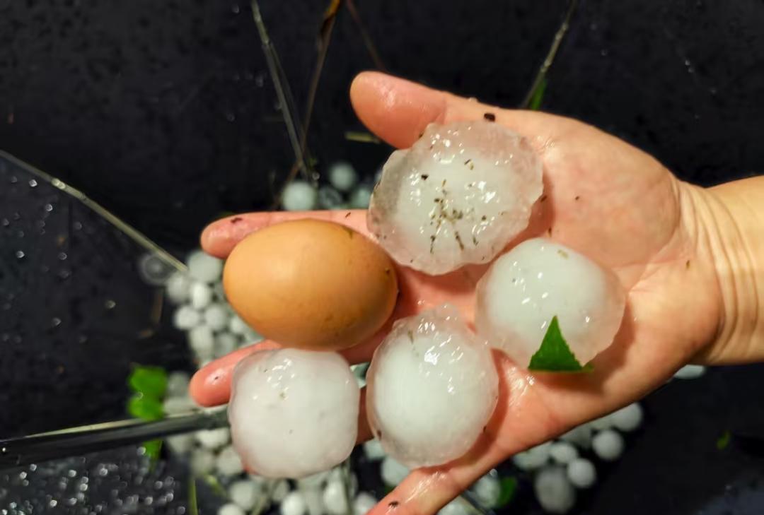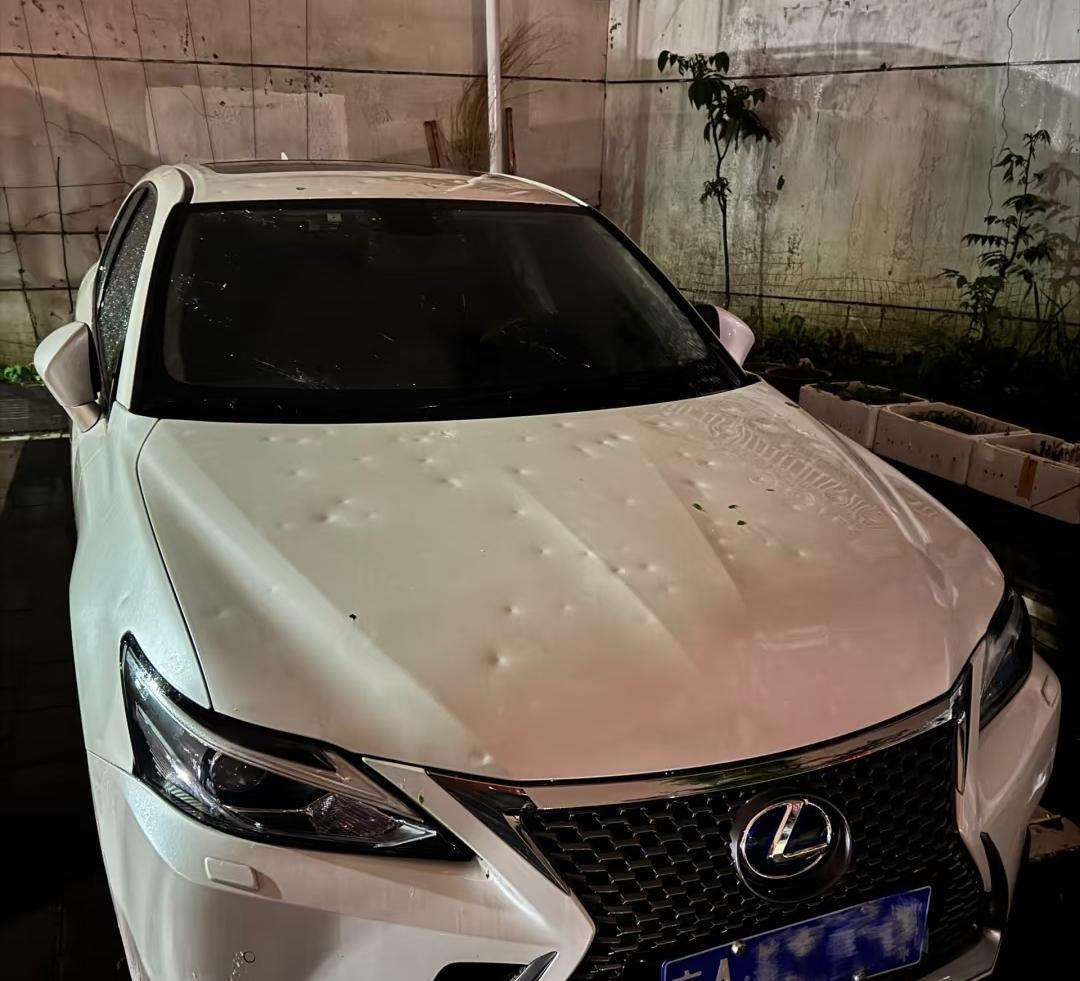 昨天这场冰雹,损失惨重 路边的车多多少少都被砸了 这大雹子威力可真不小[捂脸R]