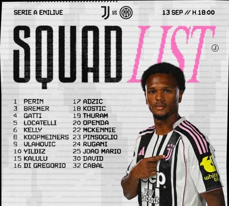 意甲第3轮尤文主场意大利国家德比20人大名单,孔塞桑 热格罗瓦 坎比亚索缺阵,新援戴维 奥蓬达在列。 门将:佩林 迪格雷戈里奥 平索里奥 后卫:布雷默 加蒂 凯利 卡卢卢 鲁加尼 卡巴尔 中场:洛卡特利 库普梅纳斯 阿季奇 科斯蒂奇 K图 麦肯尼 马里奥 前锋:弗拉霍维奇 伊尔迪兹 奥蓬达 戴维。 Forza Juve