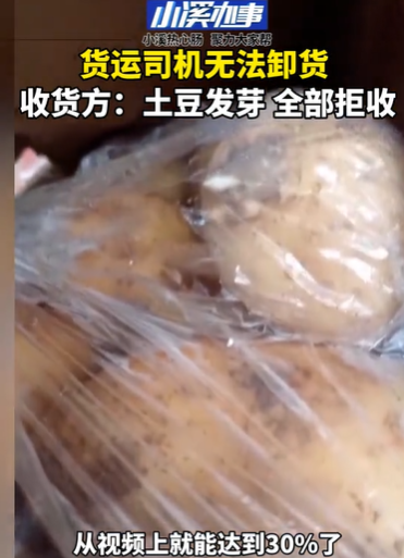 杨先生理解蔡先生的关心,便开车厢让他验货。但一看土豆,蔡先生显然不满,车上的土豆有些已经发芽,部分破损,还有些开始腐烂。蔡先生愤怒地表示,他拒绝接收这些土豆。