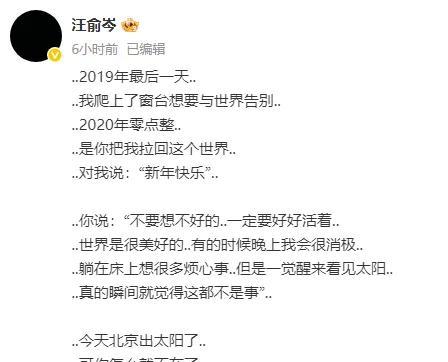 昨天还在纳闷,制片人汪俞岑为什么说于朦胧是她除父母外最爱的人,今天知道真相后,再次泪目了。 原来曾经有一段时间,汪俞岑身陷痛苦之中不可自拔,甚至站上了天台,然后被于朦胧的一声“新年快乐”救了下来,事后于朦胧还不断地安慰鼓励她,并约定都要好好活着。 而汪俞岑给于朦胧的备注也是“朦朦”,足可见她有多喜欢和信任他,所以这么温暖善良的人怎么会撇下单亲妈妈和宠物离开呢,何况他又恐高。 #记录我的2025#