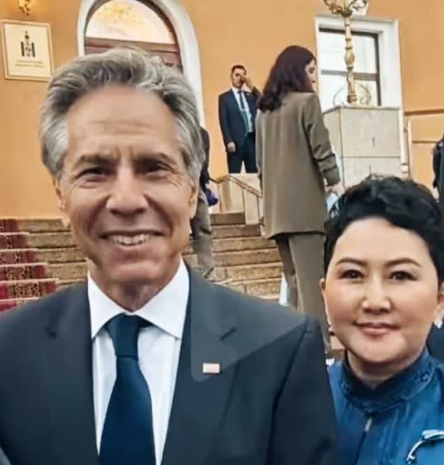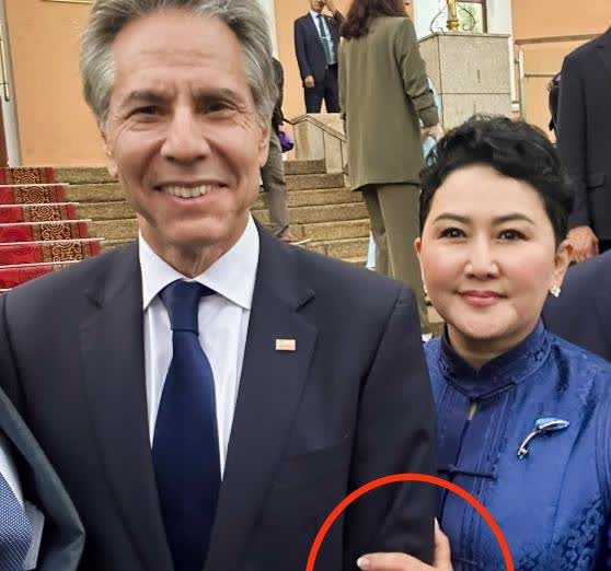 蒙古外长巴特策策格和布林肯这肢体动作,像是什么关系? 给人感觉很亲密,手挽着胳
