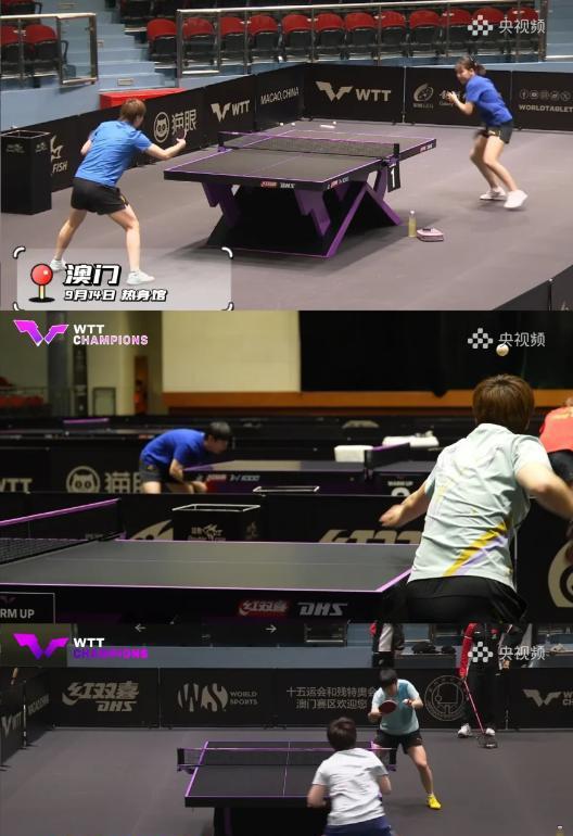 王曼昱和孙颖莎的比赛已经开始了。 刚刚看了她们的赛前训练,今天上午的半决赛莎莎和