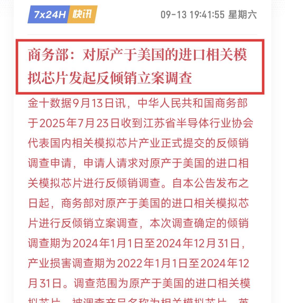 马德里的情况,看起来有点复杂,因为在此之前,中美都纷纷出招,以便获得对自己有利的结果。 美国方面: 一、懂王周五发推,呼吁所有北约国家联合起来,停止购买俄罗斯石油,并对中国征收50%-100%的关税,等战争结束后,可以再取消。 他认为,现在北约为结束俄乌战争所付出的努力,还远未到100%,按照他说的做,有利于尽快结束战争,否则就是在浪费美国的时间、金钱和精力。 这段话反映出懂王三个无奈的现实: 2. 懂王笃定认为抵抗俄罗斯,是欧洲的事,他们对此才有急迫的需求,而非美国。 那么按照谁需要、谁受益、谁买单的原则,欧洲必须要先付出代价,比如对中国加关税,而不是由美国挑头,独自承受经贸损失和通胀压力。 3. 欧洲的实力越来越拉,虽然嘴炮依然山响,但在现实中,却既无法摆脱对美国安全保护的依赖,也无法承受与中俄同时脱钩的后果。 那么结果也显而易见:欧洲极大概率不会遵从懂王的意愿,只可能打打嘴炮,但绝不会把自己的身体献祭出去,因为一旦欧洲耗干自己,那绝对会被美国分而食之,欧洲人不傻。 二、美国商务部周五晚突然发难,将23家中国公司列入实体清单,包括半导体、航天遥感、软件、物流等多个领域。 很明显,这就是在为马德里会谈提供子弹,增厚美方的谈判筹码。 中国方面,商务部宣布:对原产于美国的相关模拟芯片发起反倾销调查。 这就是对实体清单的回应,同时也为咱们的谈判人员,增加博弈筹码。 换言之,中方手里的牌很多,绝不是只有稀土这一张牌,美国不应误判形势,升级对抗,结果对任何一方都没有好处。 回到市场。 国产替代、模拟芯片、存储等方向,周一肯定会凸凸一下。 但麻烦的是:最近芯片反弹了不少,上周五也明显有资金抢先手,基本都在高位,如果周一大幅高开、或者快速拉升,会不会有人利用情绪出货?很有可能哦~ 目前局势又变得复杂起来,下周美联储大概率降息25bp,之后会发生什么?没人知道。 美股、美债对降息的预期,打得都比较满:降25bp算预期兑现,直接降50bp,则说明经济出了大问题。 关键是美联储是否会连续降息?利率期货市场,可已经充分定价年内降息三次,我对此没那么乐观,最好边走边看,稳住别浪。