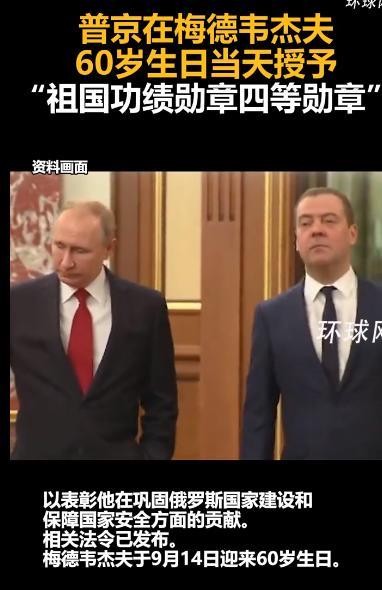 俄罗斯硬汉梅德韦杰夫得到了最好的生日礼物。消息称,普京在梅德韦杰夫60岁生日当天授予“祖国功绩勋章四等勋”。梅德韦杰夫曾经跟普京还搭过班子,当时普京是总理,梅德韦杰夫是总统。后面两人的关系一直都很好。不过普京相对温和一些,而梅德韦杰夫更强硬一些。熟悉梅德韦杰夫的人都知道,他连美国总统都怼,对外十分的强硬。如今普京给他颁了祖国勋章,说明对他的行为很认可。我没记错的话,扎哈罗娃也曾获得了同样的四等祖国勋章!