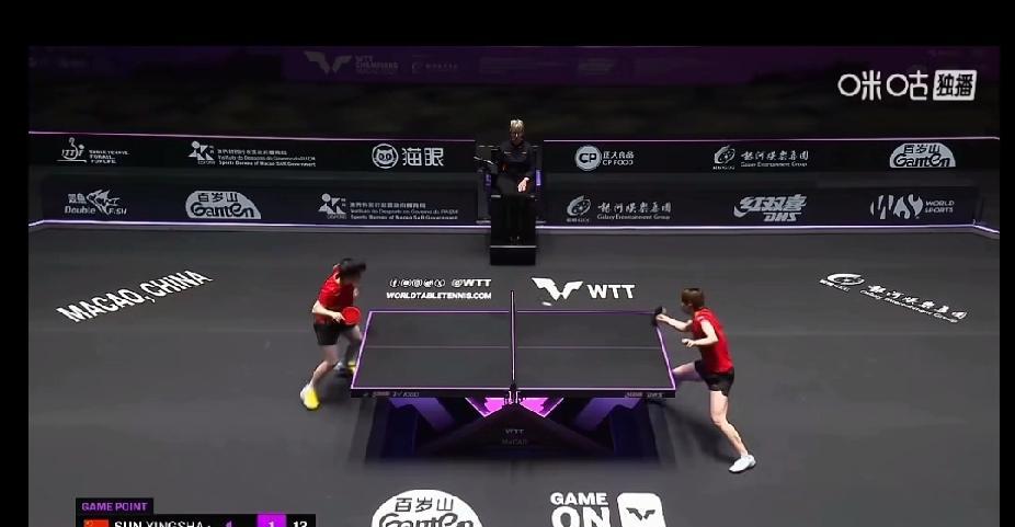 家人们!澳门冠军赛女单决赛太精彩啦!孙颖莎和王曼昱这俩顶尖选手正打得火热。第一局