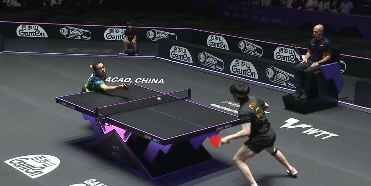 4-0!王楚钦横扫雨果,斩获男单冠军 北京时间9月14日晚间,WTT澳门冠军赛压轴大戏——男单冠军争夺战刚刚结束,两位世界冠军王楚钦和雨果·卡尔德拉诺展开了激烈厮杀,最终,王楚钦发挥神勇大获全胜,狂轰4-0战胜对手斩获男单冠军。祝贺! 4局比分:11-9、11-7、11-9、11-4。 【两人晋级之路】 本次冠军赛,王楚钦前两轮3-1分别淘汰了日本的松岛辉空和丹麦的格罗特,1/4决赛4-0零封中国台北选手林昀儒,半决赛4-0横扫韩国名将张禹珍,强势晋级决赛。 雨果先后淘汰了韩国的安宰贤和德国的邱党、弗朗西斯卡晋级4强,半决赛4-0战胜丹麦选手林德,与王楚钦相遇决赛场。今年澳门世界杯半决赛王楚钦3-4惜败,多哈世锦赛决赛王楚钦4-1获胜摘得冠军。今晚两人会摩擦出怎样的火花呢? 【比赛过程】 首局比赛,王楚钦上来就打出了优势球4-2,雨果很快反超比分6-4、8-6,王楚钦开启追分模式,8-8,王楚钦连续控制正手短再侧身上手10-8拿到局点,多回合中远对拉雨果挽救局点,王楚钦11-9先拔头筹。 第二局,王楚钦逐渐适应了雨果的进攻节奏,开局3-1领先,雨果试图追分,但是王楚钦状态全开,强大的正反手弧圈球无懈可击,尾局8-4领先,雨果搏杀连得2分6-8,但王楚钦巧打,10-6拿到局点,以11-7再赢一局,大比分2-0领先雨果 第三局,王楚钦开局非常顺利4-0开局,以后打得有点保守,被雨果连续得分反超到7-5,王楚钦随后加强进攻质量,连得4分9-7再反超比分,雨果变化发球9-9追平,王楚钦爆打10-9拿到局点,又反手拧拉大角度以11-9再下一城,大比分3-0! 第四局,王楚钦锐不可当,4-2开局,雨果只能继续搏杀,但是王楚钦早已算住了对手的击球线路再下一分,5-2逼迫雨果暂停。回来后王楚钦继续利用流畅的正反手进攻扩大比分8-2,雨果打出精彩球,王楚钦不够精准连丢2分8-4,10-4拿到赛点,最终11-4锁定胜利! 至此,本次澳门冠军赛落下帷幕,国乒斩获男女单打冠军和女单亚军的好成绩。再次祝贺!