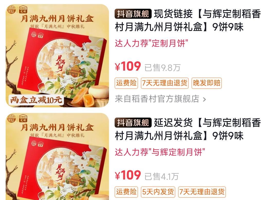 董宇辉果然说话算数!大早上的,我终于买到了心心念念的这款商品。 一大早醒来,主播们还没开播。没有洗漱,马上冲进与辉同行的小橱窗,扒拉了一下。终于找到了自己心心念念的商品。那就是前几天董宇辉半小时卖了15万单的定制月饼"月满九州"。 来不及细想,马上就买到两盒装的。省了10块钱。接着一顿操作猛如虎,马上添加亲戚朋友的地址。这个中秋节必须要送上10盒。让大家都尝尝与辉同行定制月饼。 前些天的已经吃过了。月饼的品质就不需要多说了。 我都想好了,刚买的这两盒月饼一定要留到中秋节再吃,吃完之后的月饼盒拿来做手工。 大家别忘了赶紧去抢,要不然又没了。