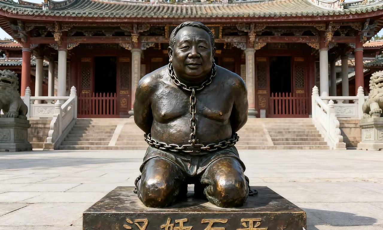 民间高手多。网上汉奸石平的跪像、舔狗像不断出现。其创作思路一个比一个清晰,雕刻技