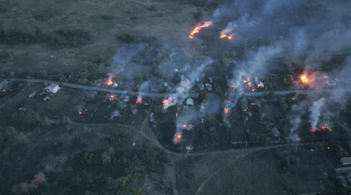 好狠!俄军多管火箭炮火力覆盖后的乌军据点场景!俄军已经开始向红利曼塞维尔斯克方向的杨波尔发起进攻。 被俄军多管火箭炮和榴弹炮齐射后,这地方基本成废墟了,多处房子在燃烧,仿佛人间炼狱!乌军又得依托地下工事进行防御作战了。