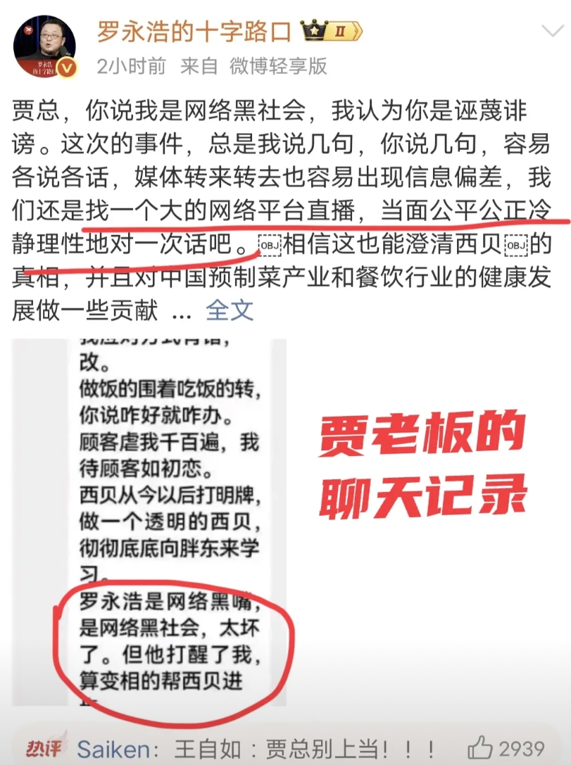 大家说西贝拿什么去赢?贾老板会答应直播对战吗?