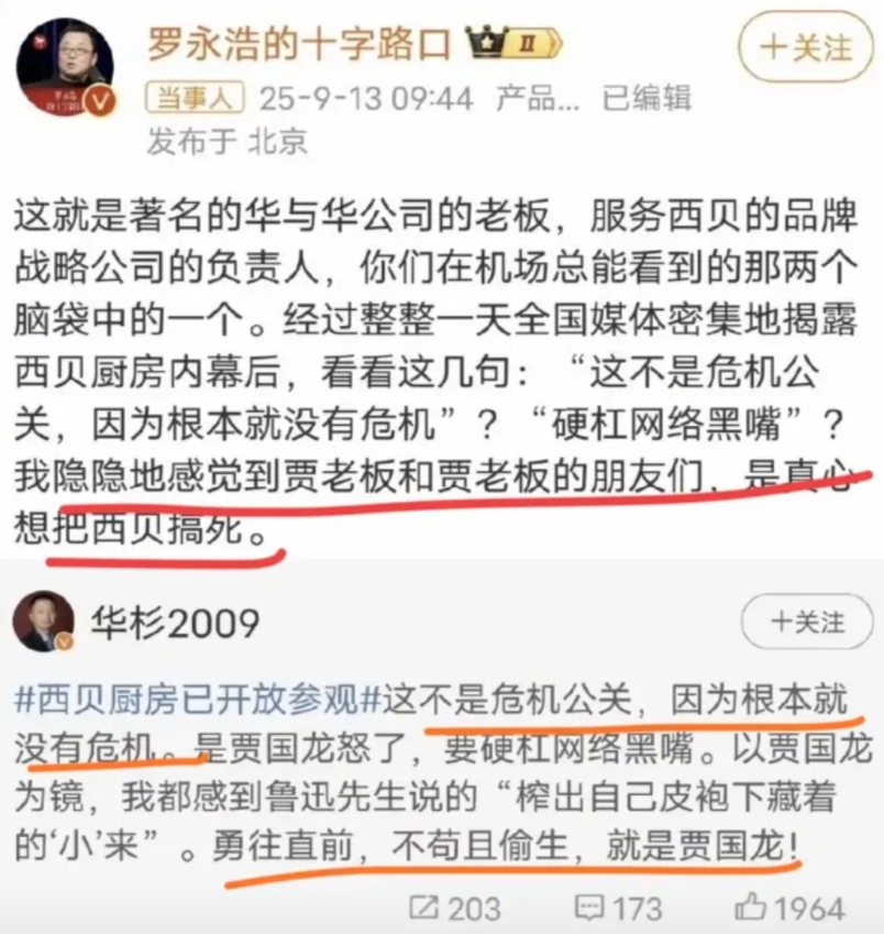 老罗本来就天天搞直播,口才没得说,现在西贝跟老罗舆论战,将目光都引到西贝这边,等于脱光了给吃瓜群众看,西贝哪有不输的