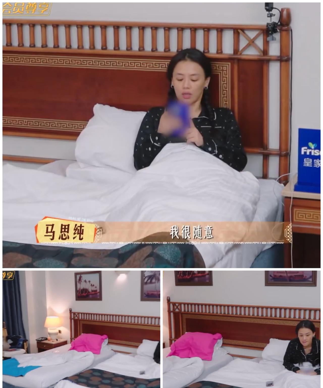 晚上12点多那英还想敷面膜, 担心马思纯不能熬夜, 马思纯吞吞吐吐 先说了一个“我”, 想了很久才说 “我都可以”。 我想, 马思纯本来想说 自己不想熬夜的。 但是她感受到那英很想敷面膜, 她不好意思让那英放弃。 于是她就说了“我都可以”。 又补充“我很随意”。 那英当下完全没有理解到“我都可以”的意思, “我都可以”就是不想熬夜呀。 但是那英似乎也不想放弃敷面膜, 也许睡前敷面膜是她多年的习惯吧。 于是那英就说了一个折中的办法 她坦言她敷面膜时间可长可短, 如果马思纯困了可以直接告诉她。 我猜最后马思纯一定会等那英敷完面膜的, 一定不会中途催她关灯睡觉。 这是她会做的行为。 她本身人就很好。 哎呀,马思纯不像陈数那样 会直接表达自己的想法, 陈数不太想听快节奏音乐, 她会直接跟那英说。 一点委屈都受不了。 但是马思纯不想熬夜,又不敢直接表达。 毕竟那英是长辈, 马思纯不想让长辈迁就自己。 哎呀,我真的听着她们的对话都有点难受。 那英和马思纯这样看起来是互相体谅对方, 但是所有的风平浪静, 肯定是有一方在妥协的。 我还是喜欢直接表达的人。 但是由于各种原因, 或许是本身的教养, 或许是身份的差异
