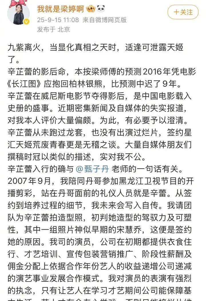 辛芷蕾发了个长文,专门提了梁婷,说这是带她入行的第一个经纪人,好多年前就该说的那