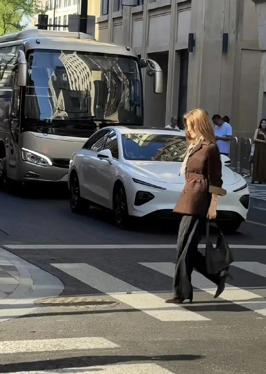 吴千语近日在上海街头拍摄广告时被偶遇,170厘米的身高让她在人群中格外醒目。当天