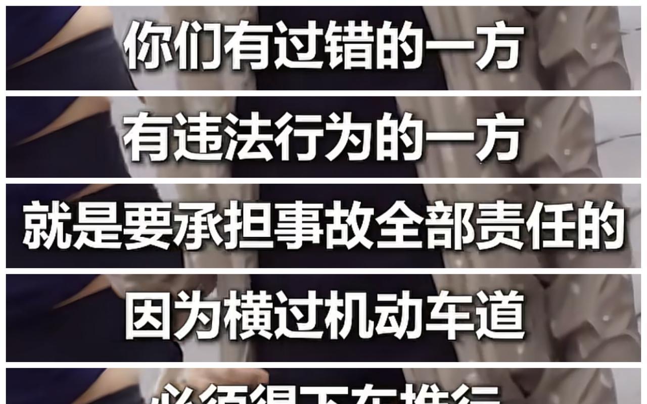 上海一女子骑自行车横穿马路大转弯,撞到正常低速行驶的轿车,轿车司机一脚刹住,女子摔倒在地受擦伤。 交警现场认定女子是过错方,负全责。女子家属却反问:车主没责任吗?驾驶员多少都要负点责任。 交警告诉他,现在是法治社会,女子是过错有违法行为的一方,是要承担事故的全部责任,因为横过机动车道,必须要下车推行。 女子是全责,真的要给交警一个大大的赞,法治社会,不是谁弱谁有理,也没有和稀泥,这才是执法该有的样子。 想到去年,我也经历过类似的事情,我也是低速正常行驶,只不过是自行车换成了电动车,她拐弯横穿马路过来刮蹭了我,最后赔了对方400。 遇到这种情况,真的不能和稀泥,该是谁的责任就是谁负责,不是你撞倒了你就有理。